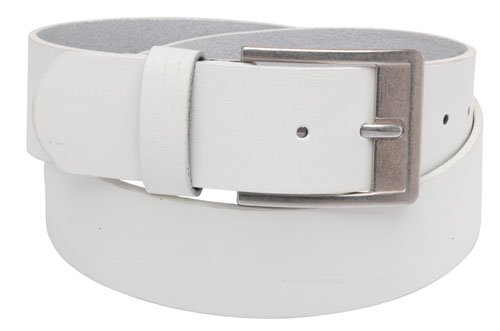 KP85 Mens Bonded Leather Belts White KP85 bonded leather belt. Plain strap. Aged metal buckle. White/Silver