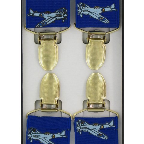 Spitfire Design Men's Clip-On Brace. Classic 35mm braces. Toughened gold colour clips. One size fits all. Two clips at the front, two at the back. Delivered in a gift box.